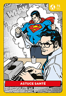 printed in French. The back of each card depicts a collage of Golden Age DC